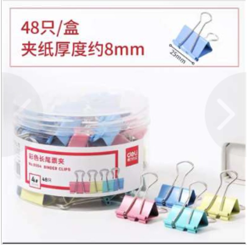 得力 长尾夹 8556ES 筒装 彩色 4号 25MM 48个/筒 48筒/箱