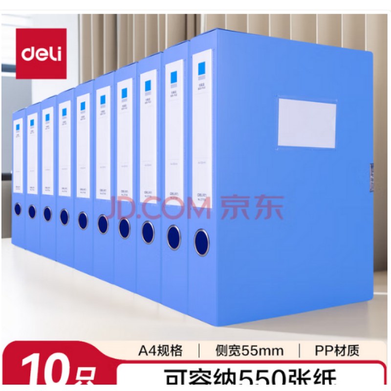 得力(deli)10只55mm文件盒档案盒资料盒加厚办公财务文件资料票据试卷收纳 27706 蓝色得力办公好物